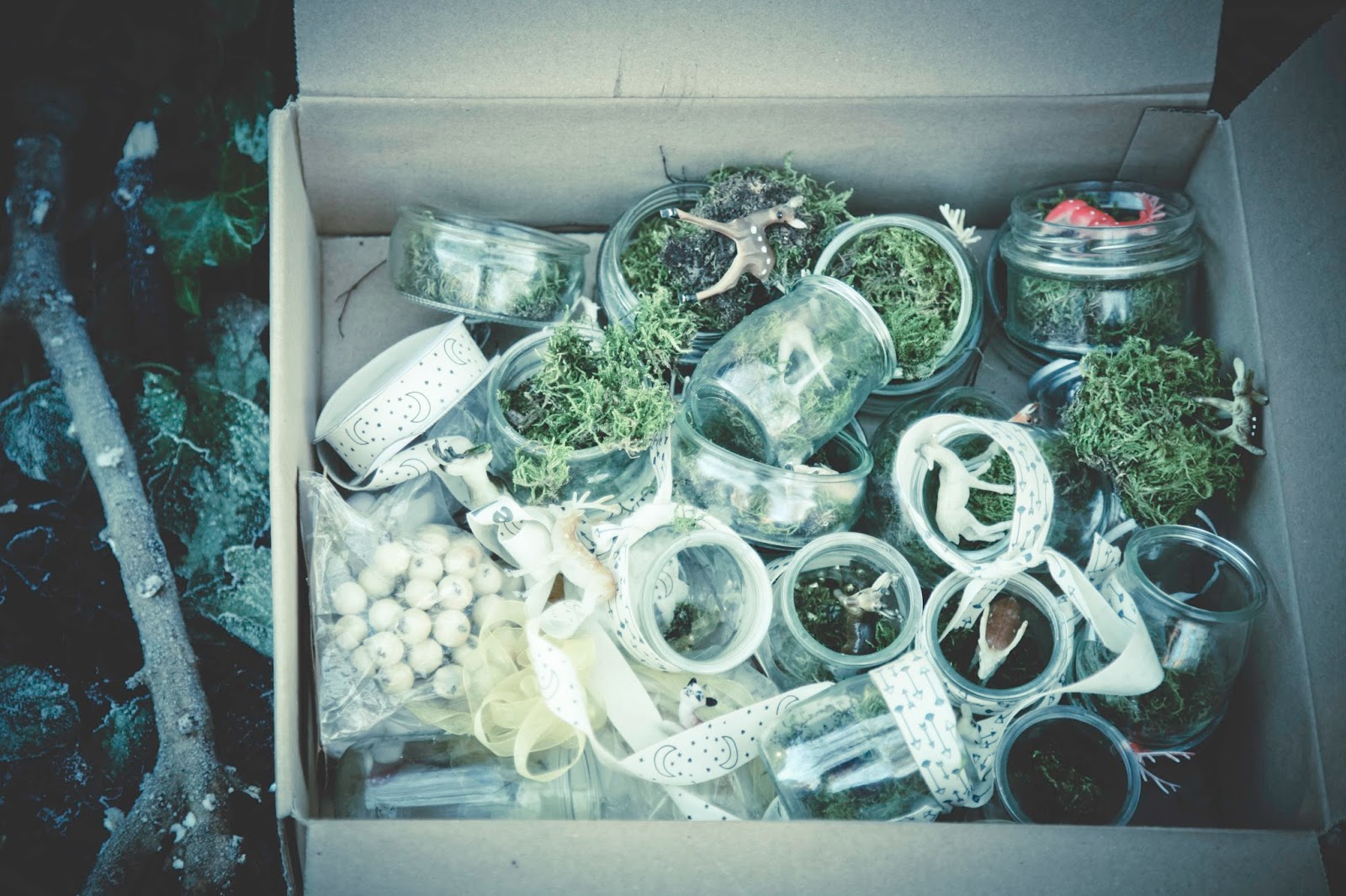 Noël est déjà fini, mais savez-vous que vous pouvez conserver sa magie dans des pots de yaourt en verre ? Pour cela, il faut adopter toute les biches orphelines des buches de Noël (les biches de buches sont souvent des cerfs, mais c’est très bien aussi). Vous les installez amoureusement sur un petit lit de mousse des bois dans un bocal dont vous aurez dégusté le contenu sans culpabilité : le upcycling, c’est une bonne cause ! Mieux encore : vous pouvez récupérer les verres à champagne que vous avez malencontreusement cassé en faisant la vaisselle : vous retournez la coupe sur le pied cassé et enfilez une perle de bois pour ne pas vous couper. Des jolis rubans pour décorer le tout et voilà Noël sous cloche ! A consommer sans modération.